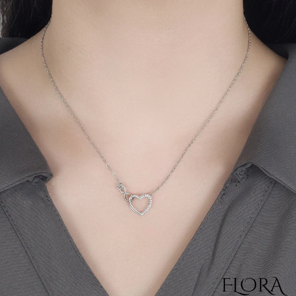שרשרת מיוחדת בעיצוב לב עם סימן האינפיניטי (אין סוף), עשויה מכסף אמיתי ומעוטרת באבני הזירקון היוקרתיים.