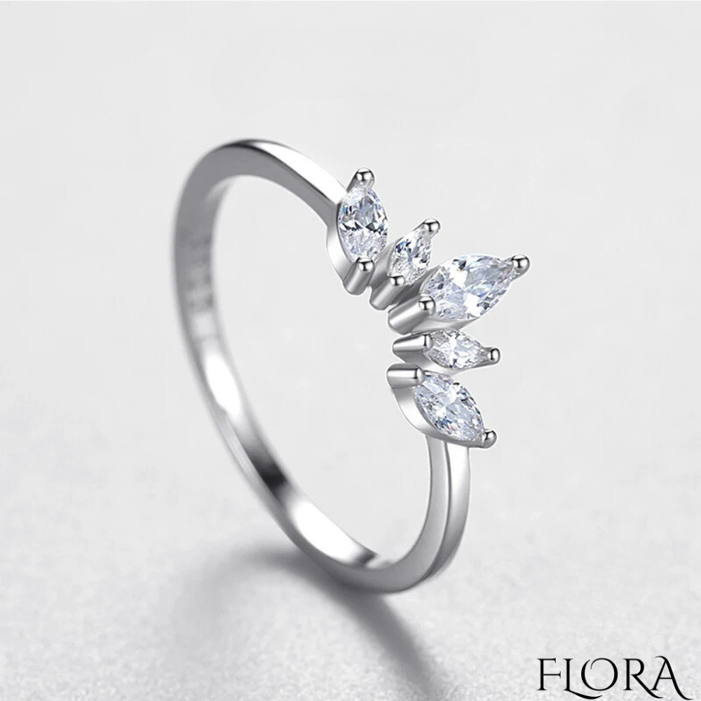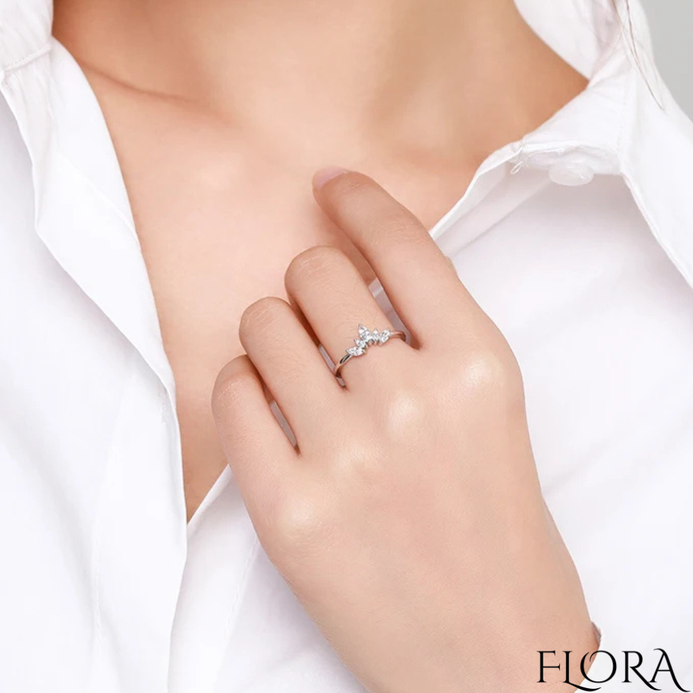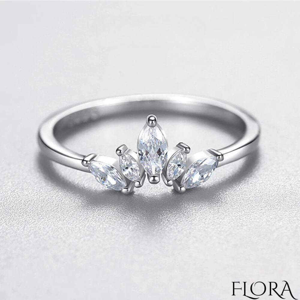טבעת בעיצוב כתר עדין ומרהיב, עשויה מכסף אמיתי ומעוטרת באבני זירקון מבריקות